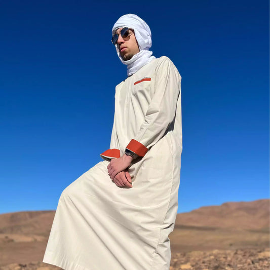 - Design Unique : Chaque Qamis est unique, avec des touches de design inspirées de la culture berbère et des paysages désertiques.