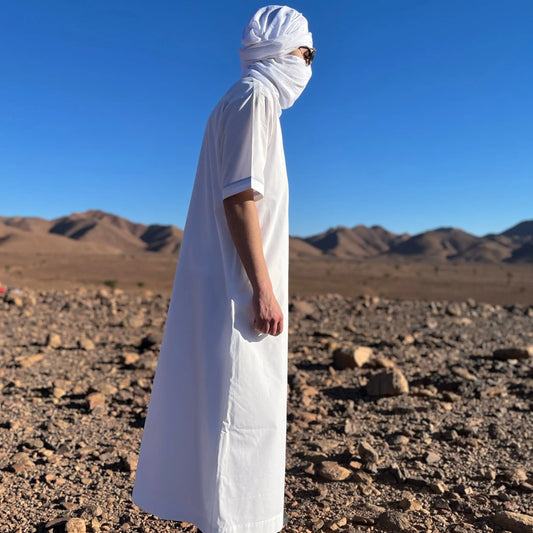 Plongez dans l'univers de Berbère du Désert, où la tradition rencontre la modernité pour transformer le Qamis Homme. Inspirés par l'esprit libre des nomades berbères et l'élégance intemporelle des tissus naturels de qualité. Pour mieux comprendre la Marque lire Notre Histoire.